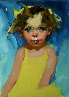 "Bow Tie" original oil/linen/gatorboard 6x8 litlle girl and dolls series.
